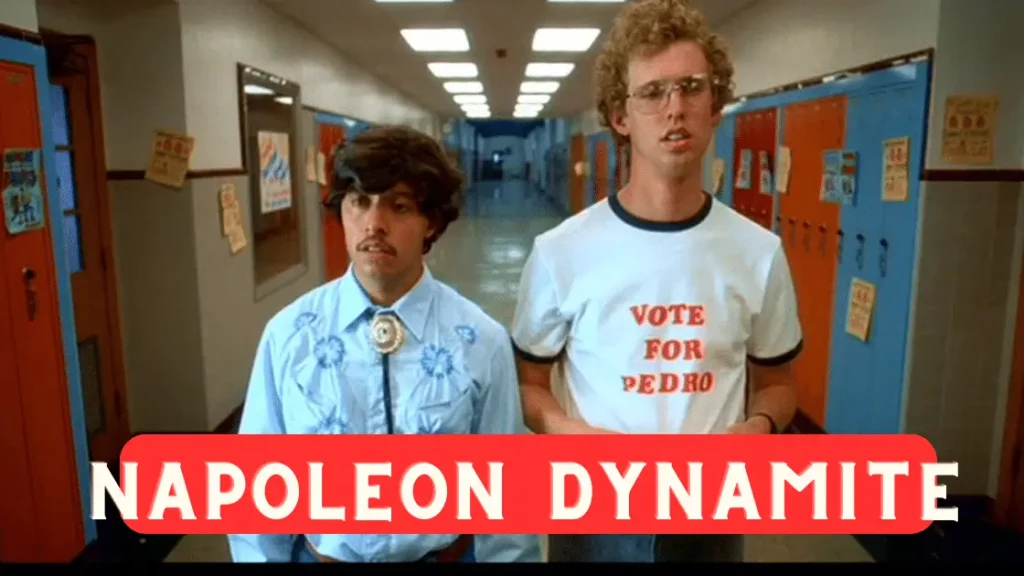 Napoleon’s outfit is distinctive and adds to his unique character. It typically includes high-waisted, tight-fitting, light-colored jeans, a graphic “Vote for Pedro” t-shirt, glasses with black frames, and a curly red wig. The outfit has become an iconic representation of the character.